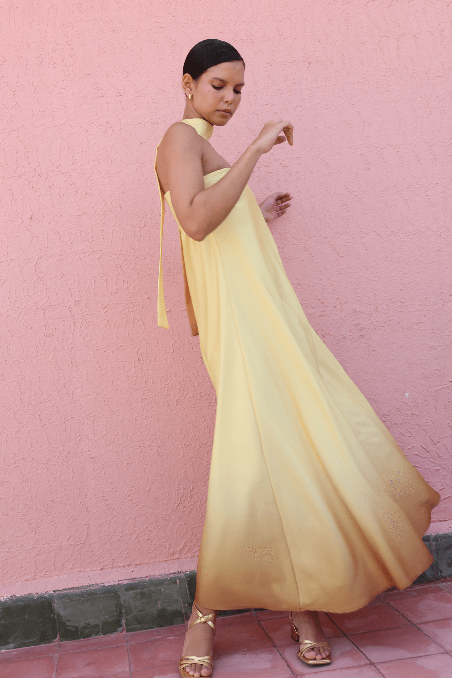 El Malibu Maxi Dress es pura elegancia etérea en movimiento. Su silueta fluida de corte amplio se desliza con gracia, mientras que el vibrante tono amarillo irradia frescura y vitalidad. El detalle de tiras que caen delicadamente en la espalda aporta un aire sofisticado y femenino, perfecto para quienes buscan destacar con un estilo moderno y ligero.